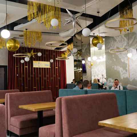 - Банкетный зал — отдельное помещение на 50 человек. Идеальное место для больших компаний.